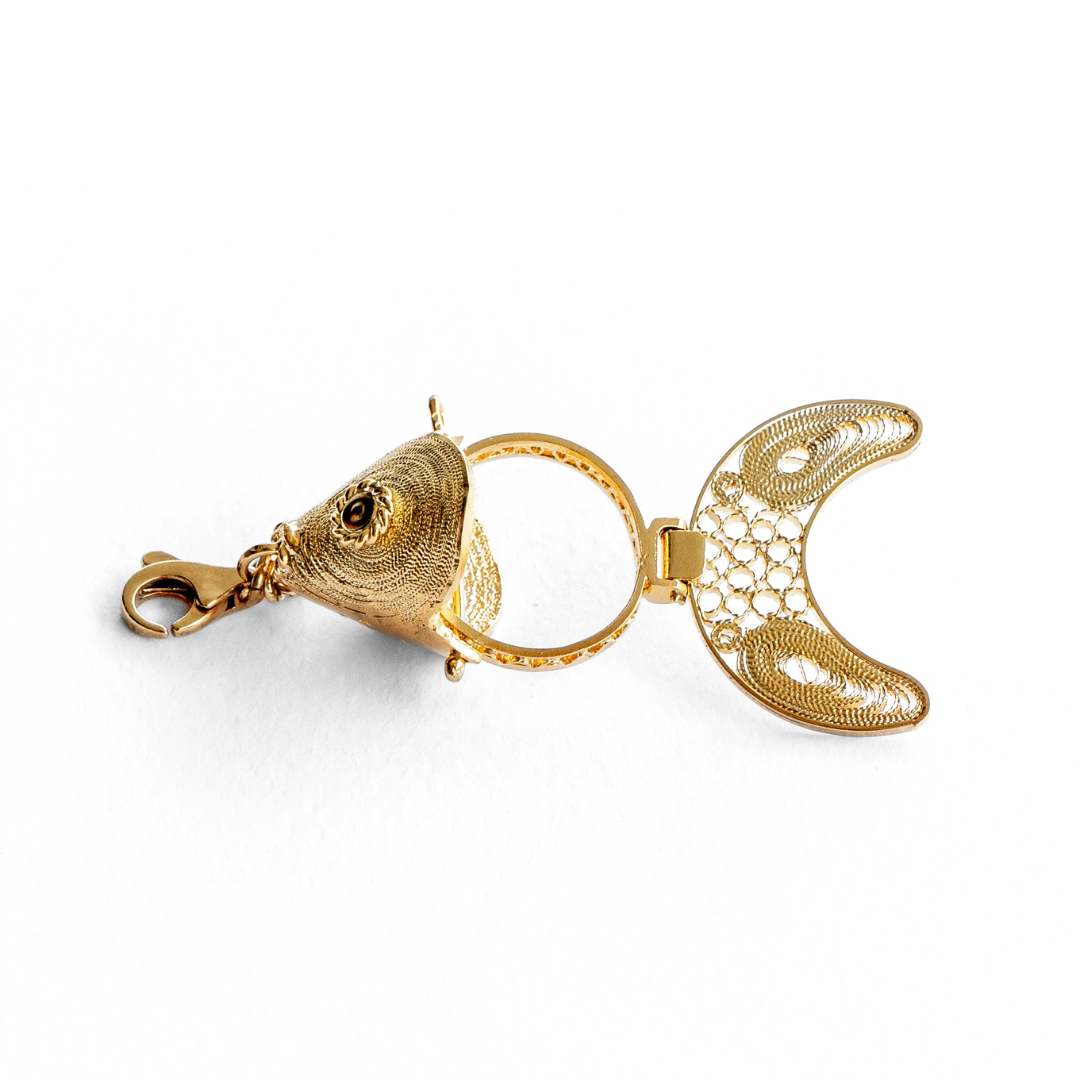 Articulated pendant inspired by the Goldfish. Also known as veil tail fish, for its peculiar appearance that evokes this element, and the beauty of its colors. In addition to its appearance, which aesthetically harmonizes with the environment, it is known for its character, completely friendly.